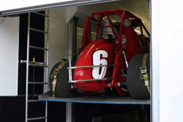 The #7 rolls out of the massive trailer. Greg drove Harlan Willis’ #45 car this weekend.