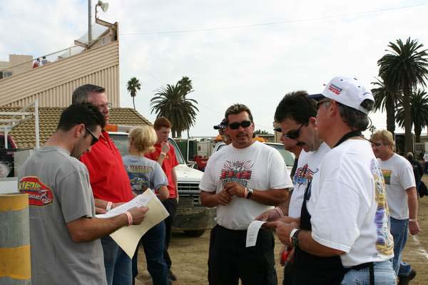 The drivers meeting answers a lot of questions each week. Her they are talking about how the chili was.