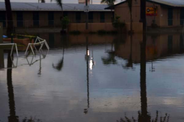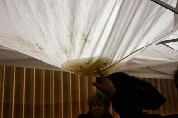 After the rains, our busted EZ-UP sags due to the water captured in it.