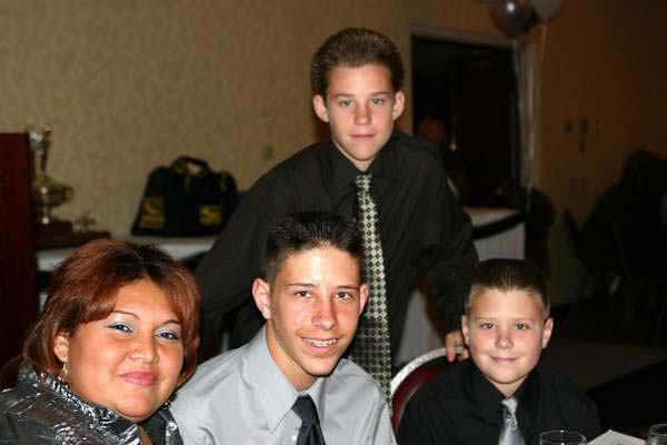 Cody and Logan sit next to Estella Escobar as Austin stands behind them. I told those boys to be sure and get some champagne, do you think they did?