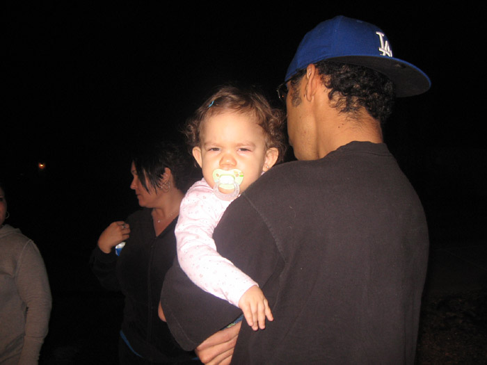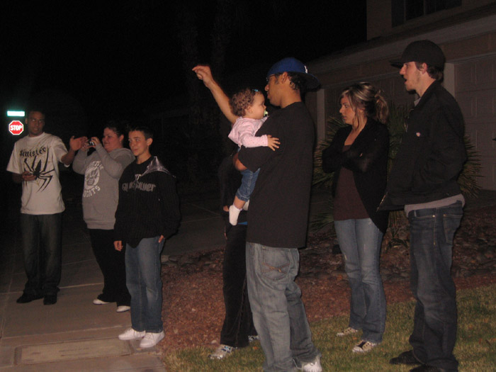 The family awaits the excitement of a race car at Pa Pa Ken's house.