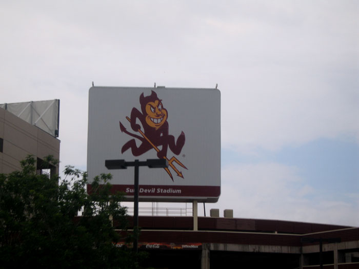 The ASU logo. They will miss talented James Harden next year as he turns pro and leaves their basketball team. They beat my Bruins twice.