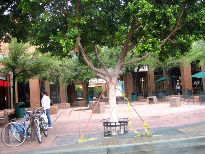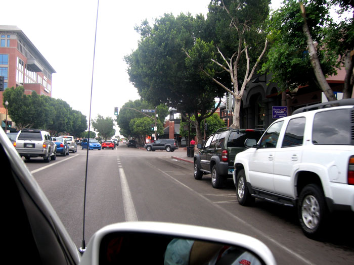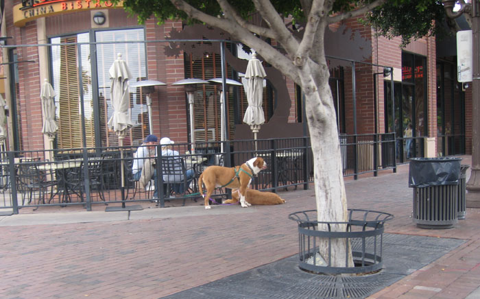 Mill Street has some trees and places to relax. The misters come on when it gets hot.
