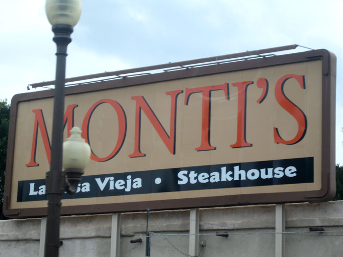 The sign over Monti's Steakhouse. This place has been there a long time and was the place of some of our dinners over the years here. It is an Adobe building with at least 20 dining rooms, so extremely large! The food is reasonable and good.