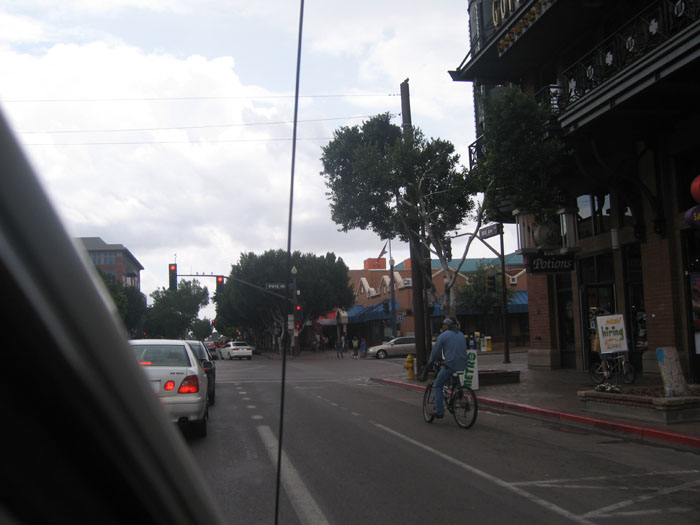 An "older guy" bikes down the street? He wasn't a student. The small sign says potions, I wonder what that means?