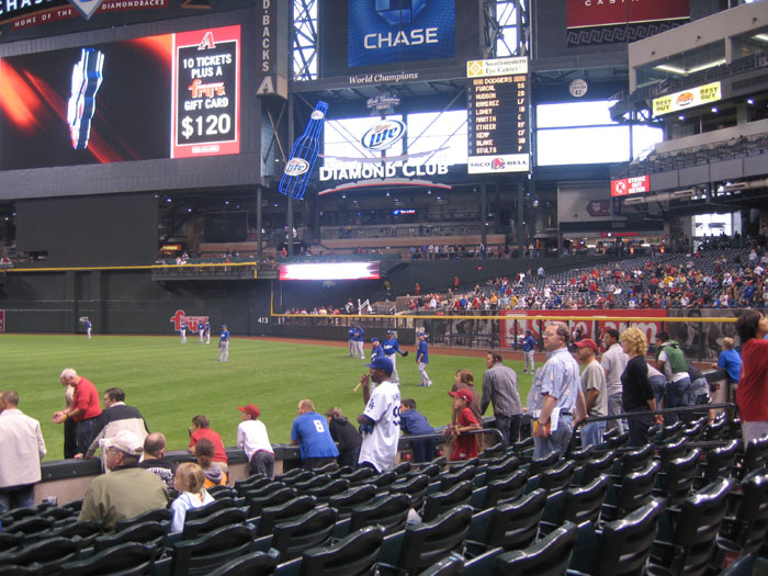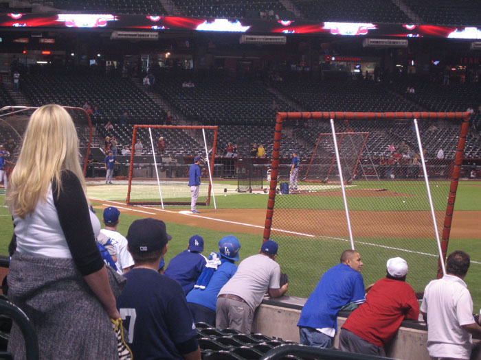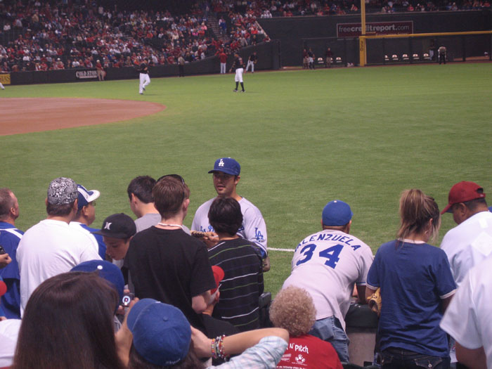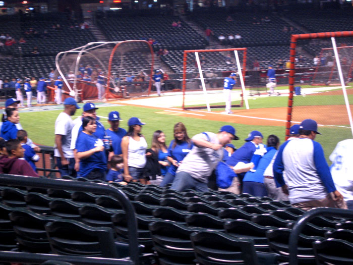 There was a lot of blue down there as the Dodger players came by and autographed stuff for the fans.