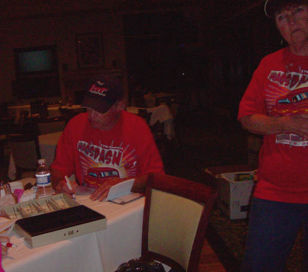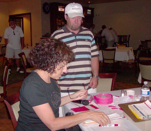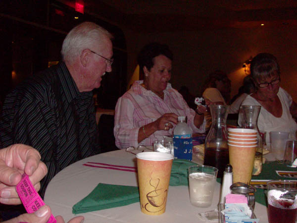 Jim pays for the midget he got in the auction and turned over to Fran.