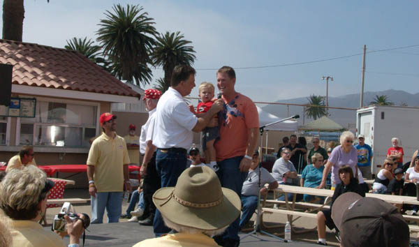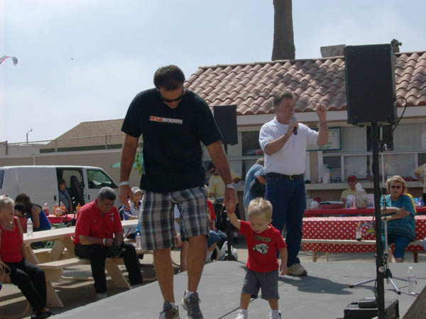 Alan Ballard smiles as he hi-jacked someone's kid. Kinda lookes like Blake.