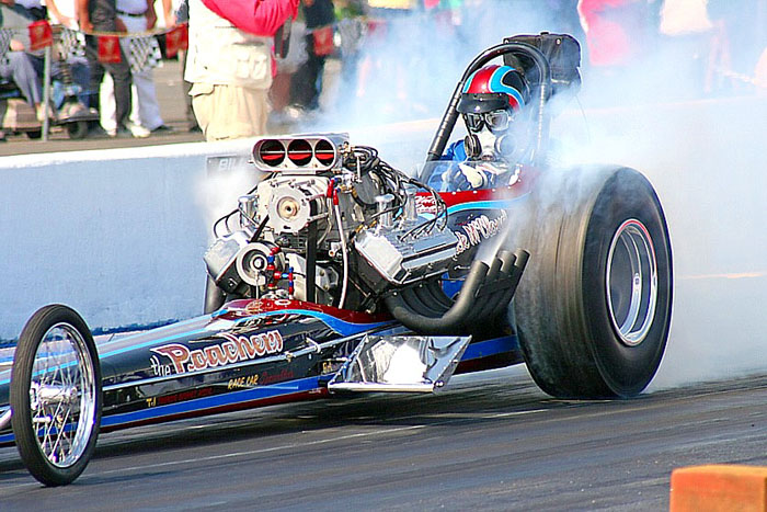 Here he makes a smokey pass in the unusual drag car.