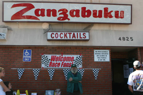 The Zanzabuku Lounge planned a get together for Tony Jones and the Alexander team at the new sponsors bar in Lakewood/Long Beach for everybody. I wasn't going to be in town, but after finding a way down the 280 mile road from Las Vegas, I managed to get in a Friday night B Ball game and stayed over for the lounge event. I arrived early knowing I would be leaving by 3 PM to get home for a date with Mrs Wags that night. The event began about 1 PM with a number of people already geared up. The event was also going to do some fundraisers for the team and feed the crowd hot dogs and stuff as the afternoon went along. It was good weather and the bar began to pack up as many stayed outside and visited. It is not often that fans and racers get together in any form of fun, but this was one of those rare times. Everyone had fun as people dropped by and the afternoon ended.