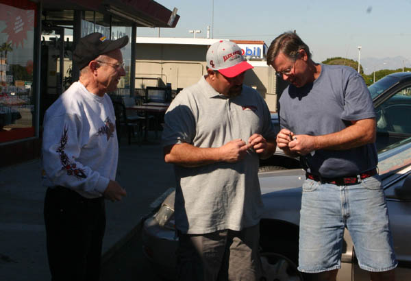 Steve Alexander, in the middle, is very interested in something small. The guy on the left is Bob also and his car got a lot of attention. I think they might be looking at a broken alternator bracket he discovered on his hot rod and was concerned about the drive home.