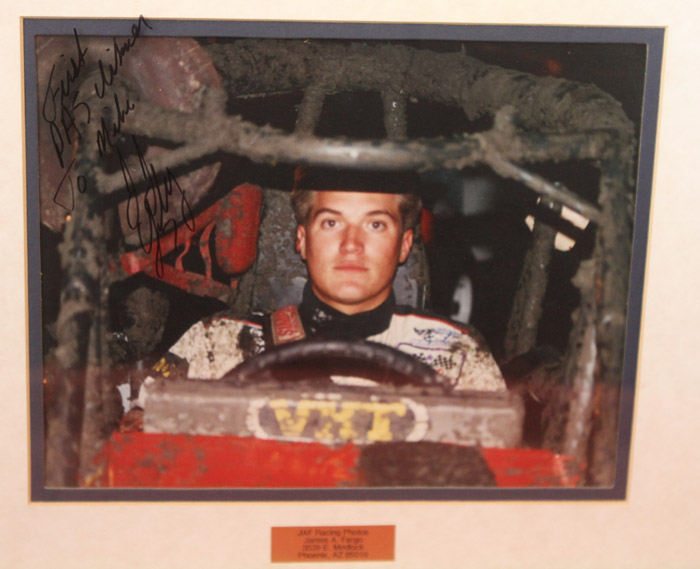 Item 33 - Framed and autographed photo of Ron Shuman in Texico car - From Mike Clark