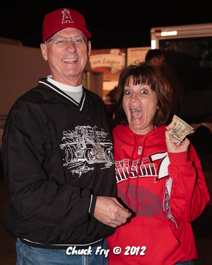 The Number 7 car got shiney tire money. Mike Clark presents to Bryan's mom.