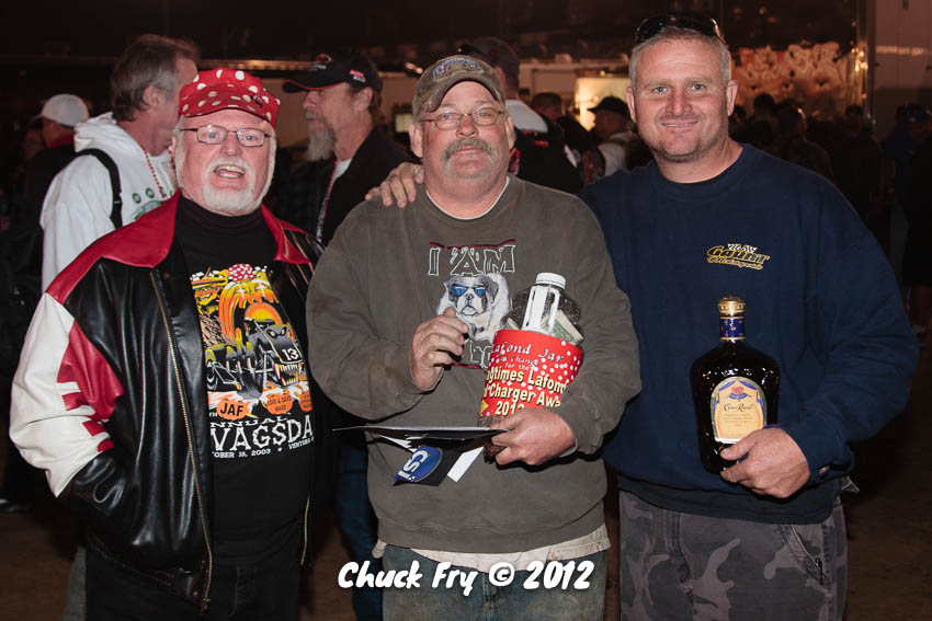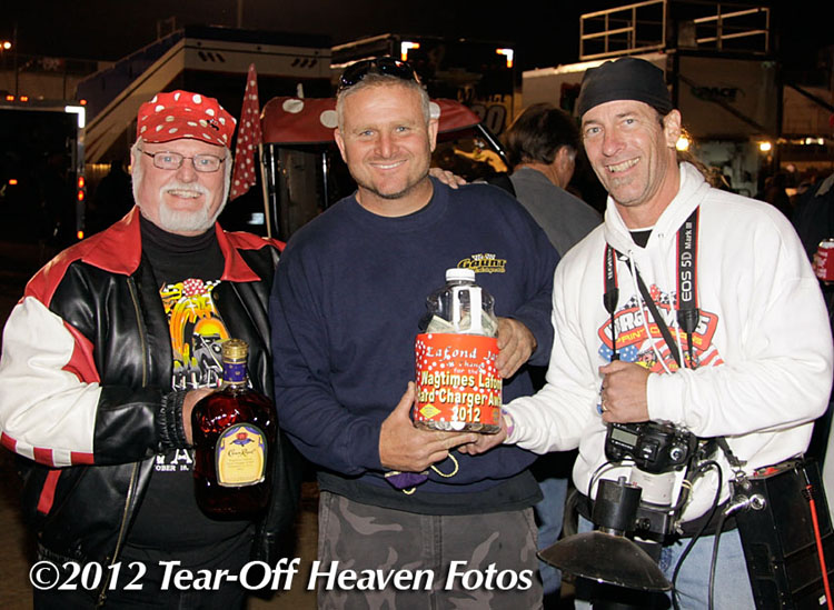 Austin Williams got $500 and a bottle of Crown Royal Friday night for Hard Charger. here with Steve Lafond, Wags and Mike Clark. Foto by Tear off Heaven Fotos