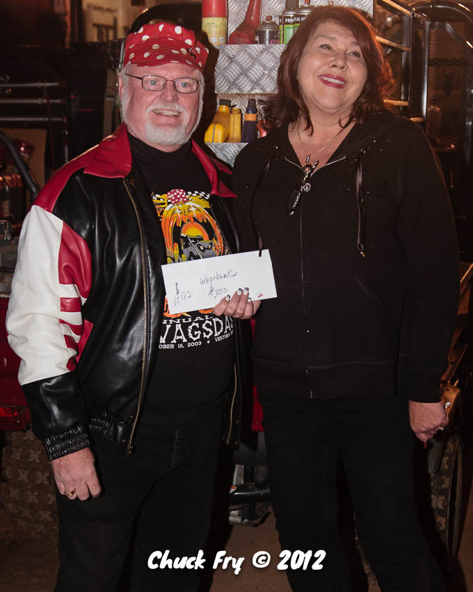 Rickie Gaunt got the Lafond Jar of change with $1000 and a bottle of Crown Royal for Hard charger. Here with Biker Bruce and Wags