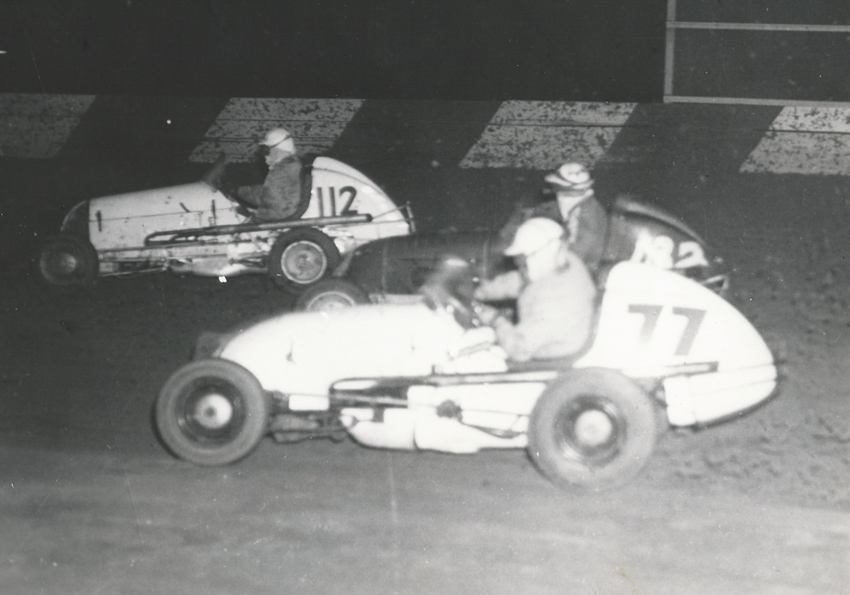 The midget Harry owned was painted with house paint. He just took rollers and went over it – it was horrible. He needed somebody to paint his car for him, but he was too cheap to pay anybody to do it. So I’d listen to the conversations going on in the pits, sitting way up in the grandstands in turn two. This guy’s talking, this guy’s listening, this guy’s saying that. “Hmmm. That guy’s Harry Meyer,” I thought. He don’t know it, but I’m gonna paint his car.” So I go down there after the race is over, and I said “Which one of you guys is Harry Meyer?” He said, “Well, I’m Harry Meyer.” I said, “You know, I come out here every night, and you’ve got a very unique car, but it’s got a lot of trouble. Would you be offended if I offered to paint it for you for nothing?” He said, “Come here, kid,” and that’s all it took!