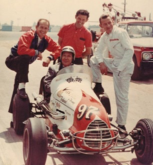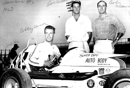 Bobby Unser in the South Bay Auto Body Special, owned by Don (left) and Bob Weaver (right). Photo taken sometime in 1963. (Don Weaver Collection)