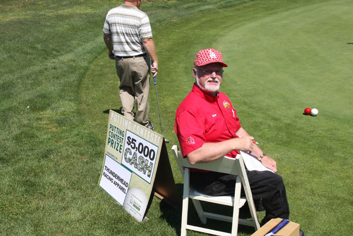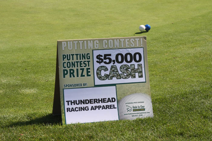 The putting contest could earn some lucky person $5000. There were three putts to make sequentially, but you had to make the first to get to the second and the second to get a shot at the big money. Unfortunately, no one made the first 10 footer to move on. It was the big break right, and that got em' all but one.